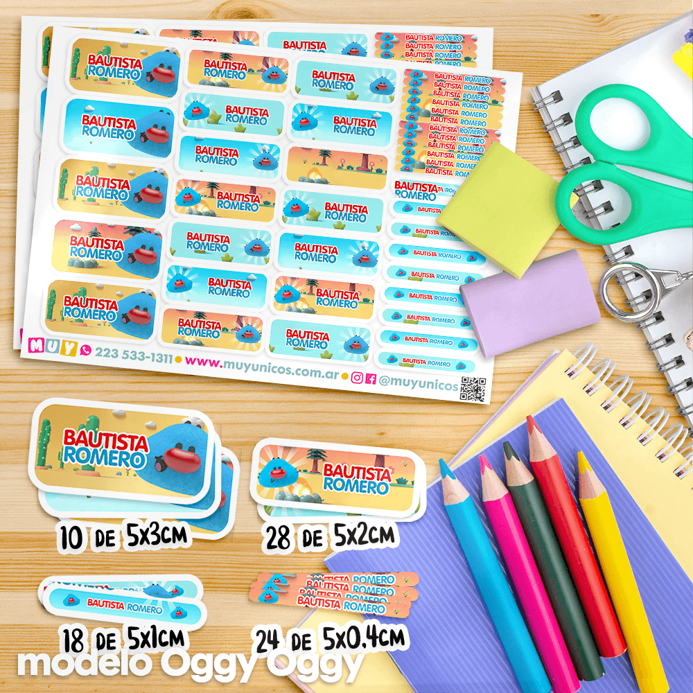 Recibe un kit de etiquetas escolares personalizadas con el nombre que elijas, listas para imprimir. Diseñamos este set a mano para ti y te lo enviamos en un archivo PDF. Este práctico archivo digital en formato PDF de 14 páginas te permite imprimir las etiquetas que necesites, en el tamaño que quieras y cuantas veces desees. Tu compra incluye: Más de mil etiquetas personalizadas de distintos tamaños, diseñadas para adaptarse a todos los útiles y objetos personales. Etiquetas (5×3 cm): Ideales para cuadernos, carpetas, estuches, mochilas y loncheras. Etiquetas (5×2 cm): Perfectas para reglas, marcadores gruesos, sacapuntas, agendas y pegamento…