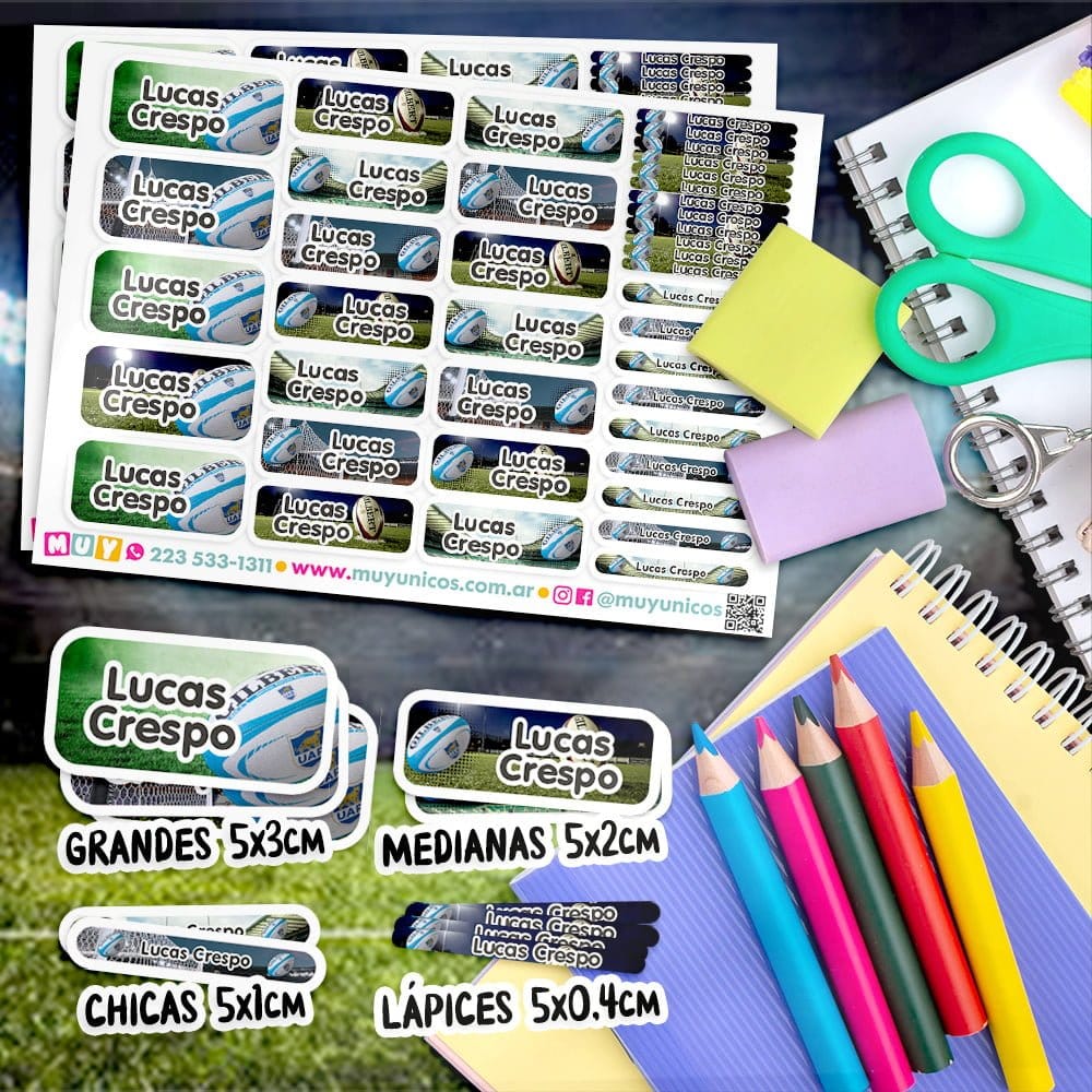 Recibe un kit de etiquetas escolares personalizadas con el nombre que elijas, listas para imprimir. Diseñamos este set a mano para ti y te lo enviamos en un archivo PDF. Este práctico archivo digital en formato PDF de 14 páginas te permite imprimir las etiquetas que necesites, en el tamaño que quieras y cuantas veces desees. Tu compra incluye: Más de mil etiquetas personalizadas de distintos tamaños, diseñadas para adaptarse a todos los útiles y objetos personales. Etiquetas (5×3 cm): Ideales para cuadernos, carpetas, estuches, mochilas y loncheras. Etiquetas (5×2 cm): Perfectas para reglas, marcadores gruesos, sacapuntas, agendas y pegamento…