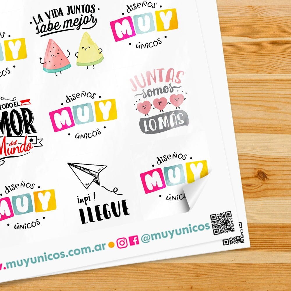 Armá tu plancha de Stickers para tu emprendimiento o para personalizar regalos, souvenirs, y todo lo que quieras.